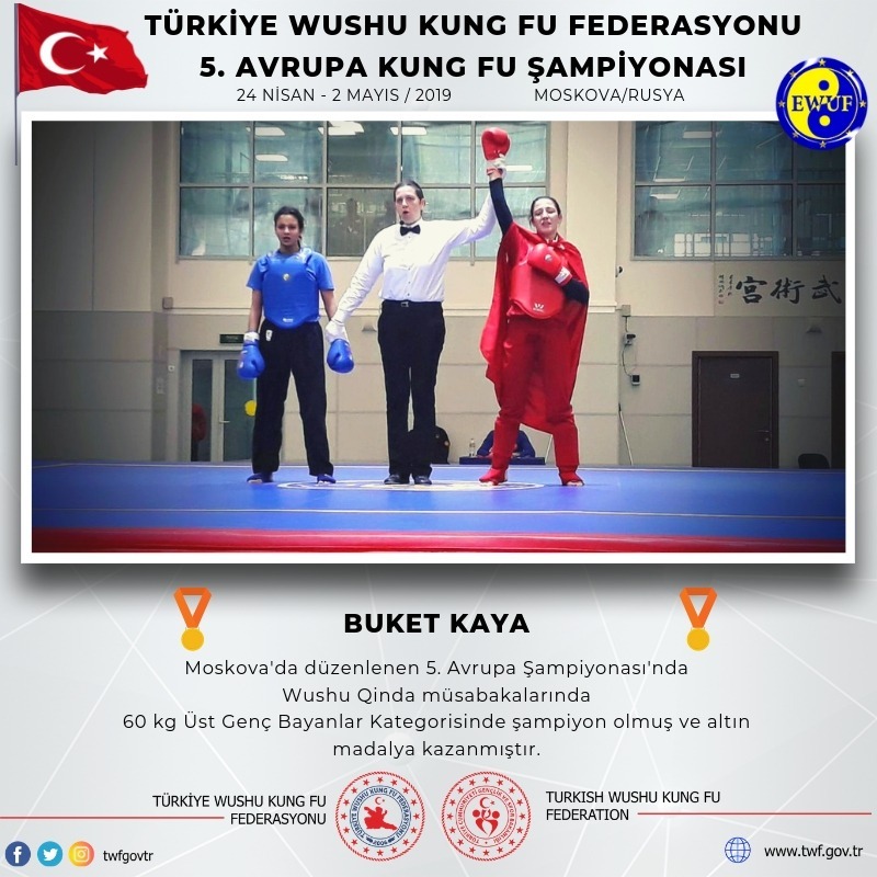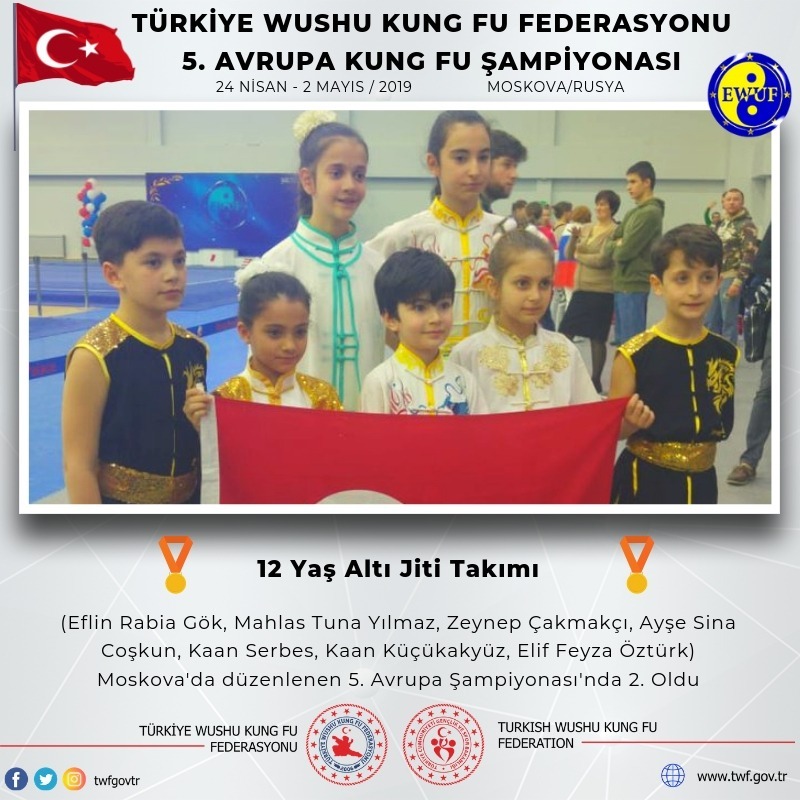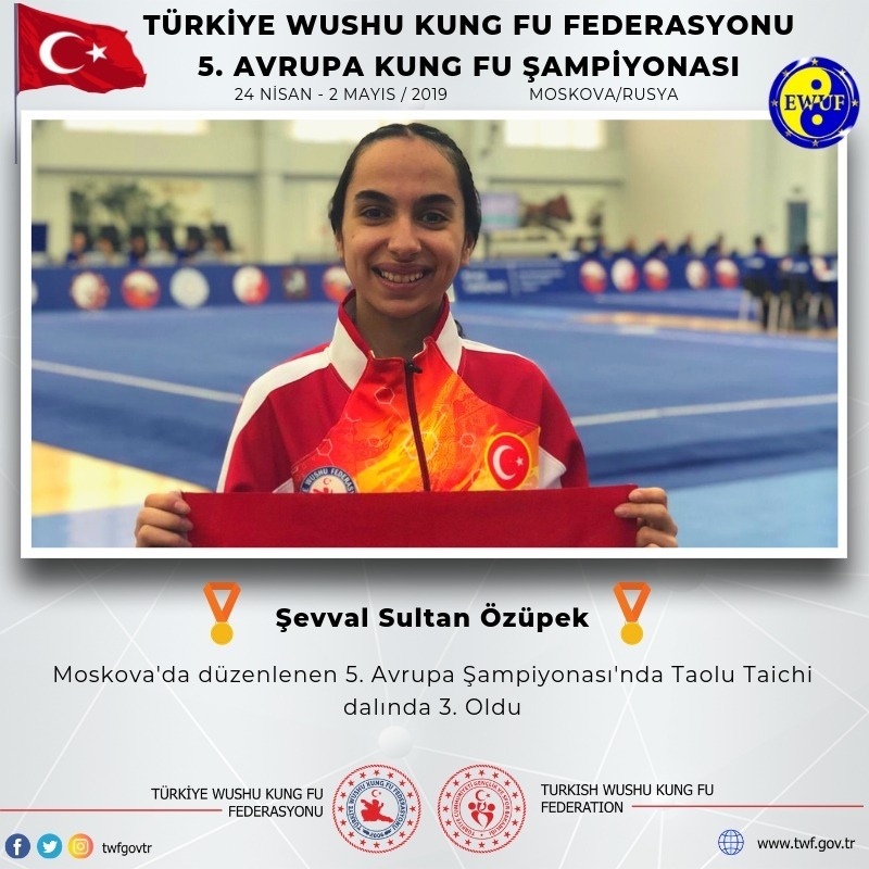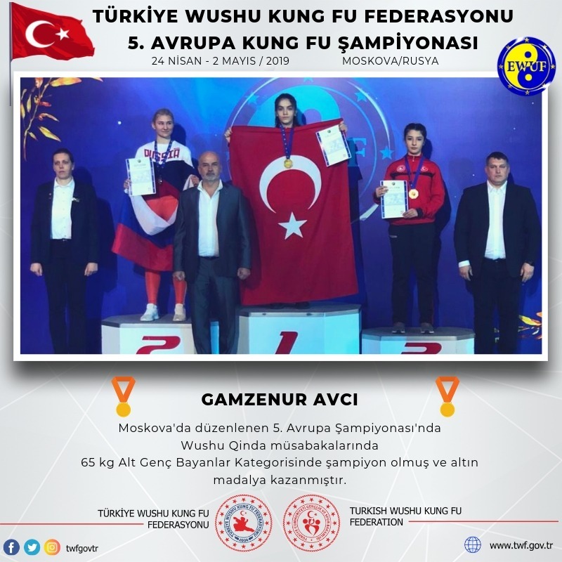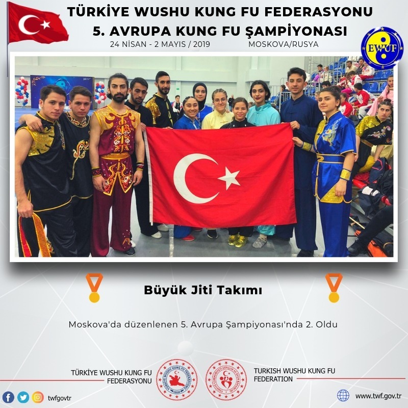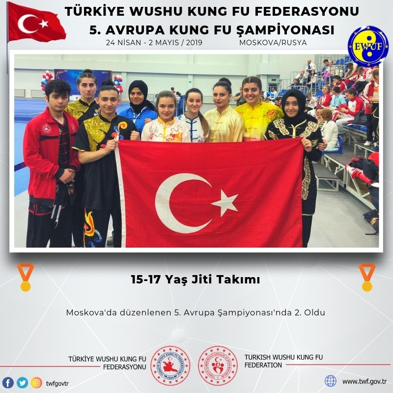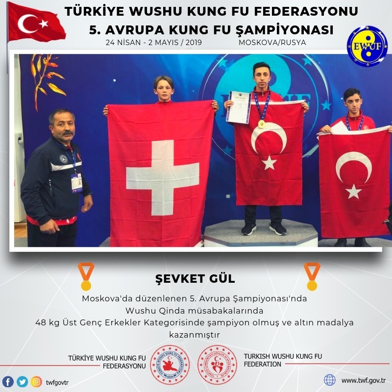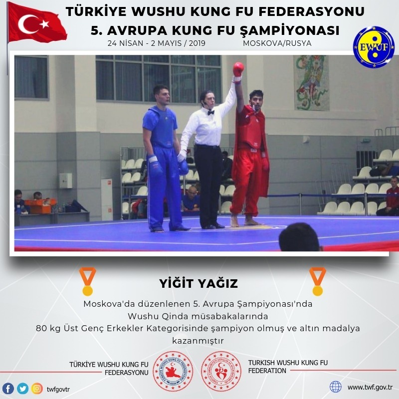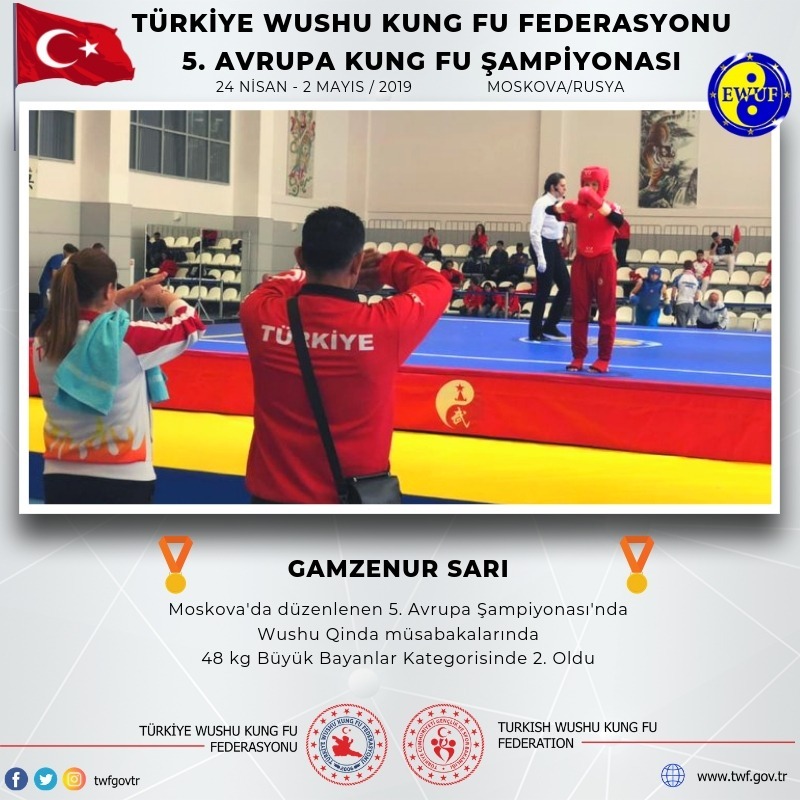 5. Avrupa Wushu Kung Fu Şampiyonası’na 84 kişilik sporcu kadrosu ile katılan Wushu Kung Fu Milli Takımı, Avrupa Şampiyonasını 28 altın, 26 gümüş, 18 bronz madalya ile tamamladı. 25 ülkenin katıldığı şampiyonada toplamda 72 madalya kazandı.