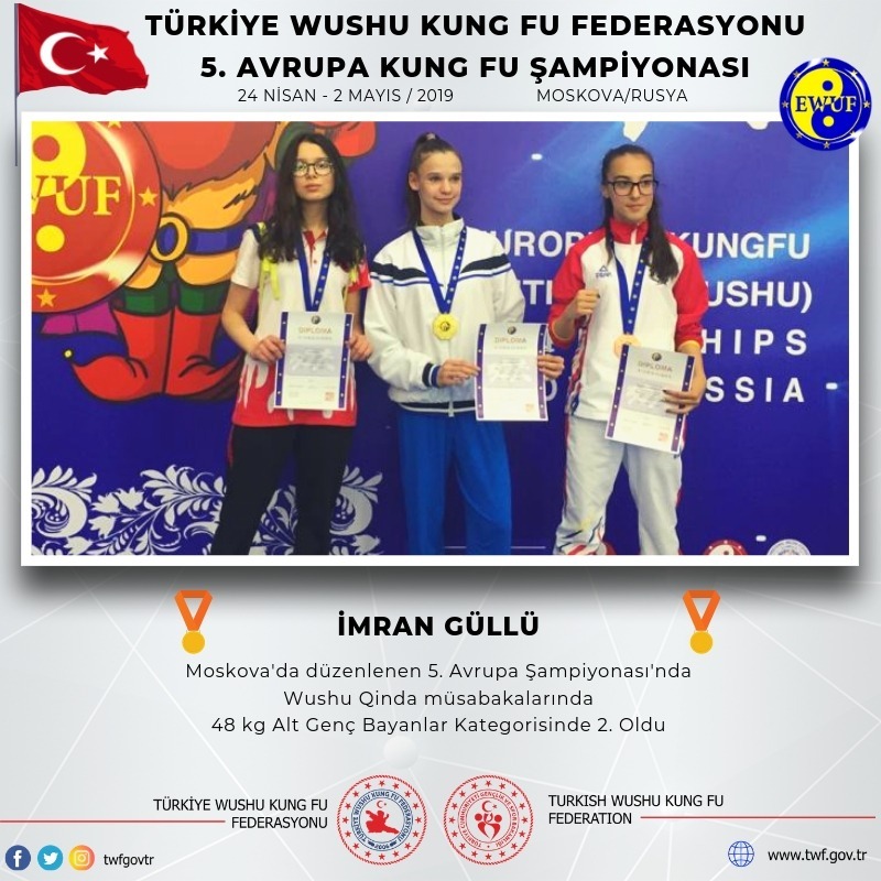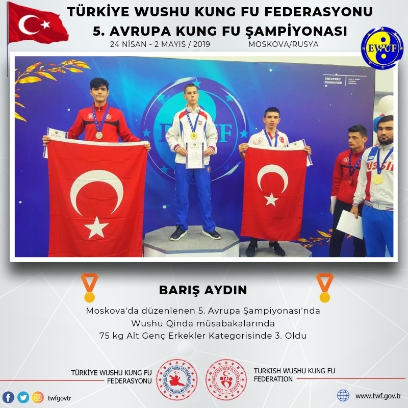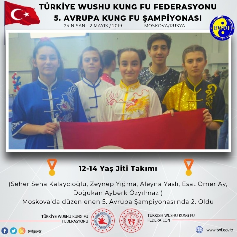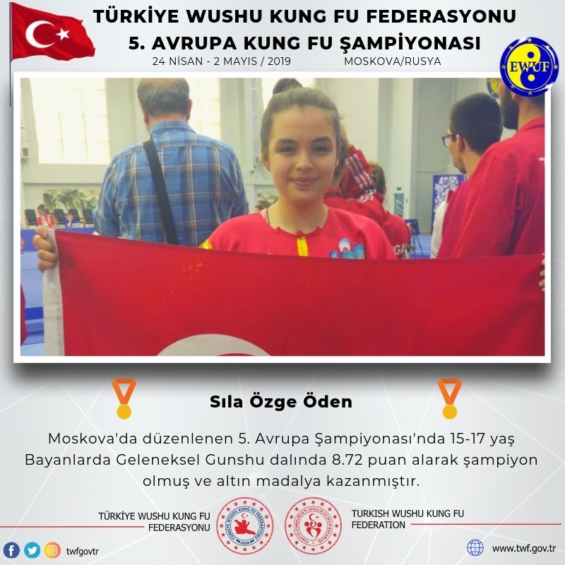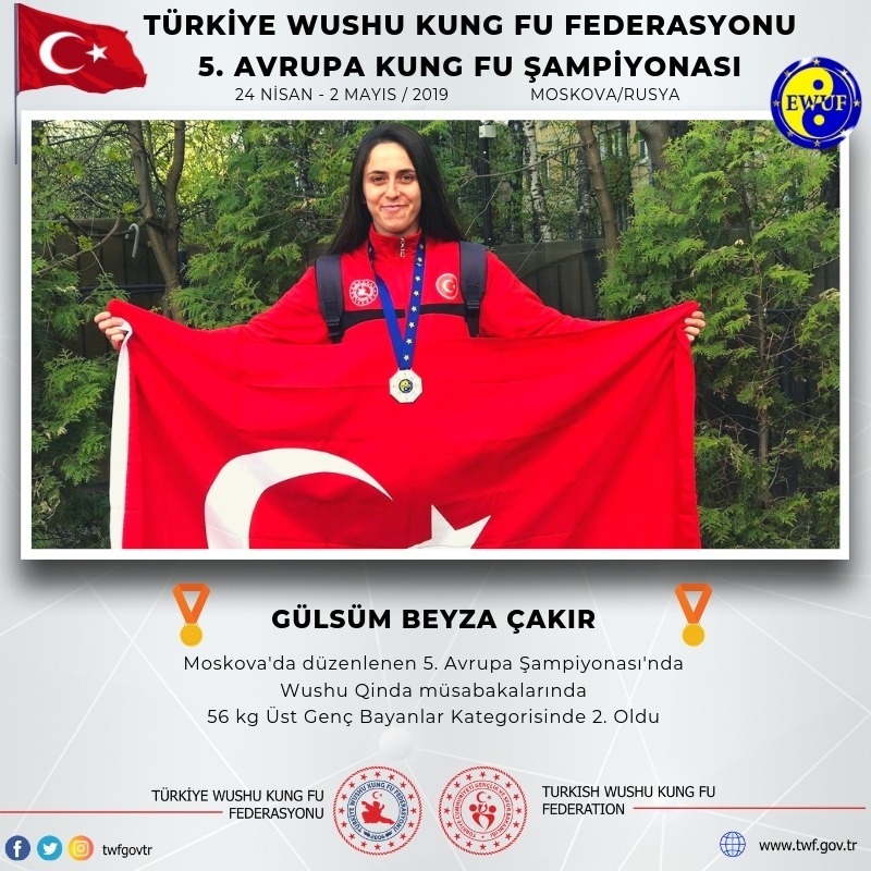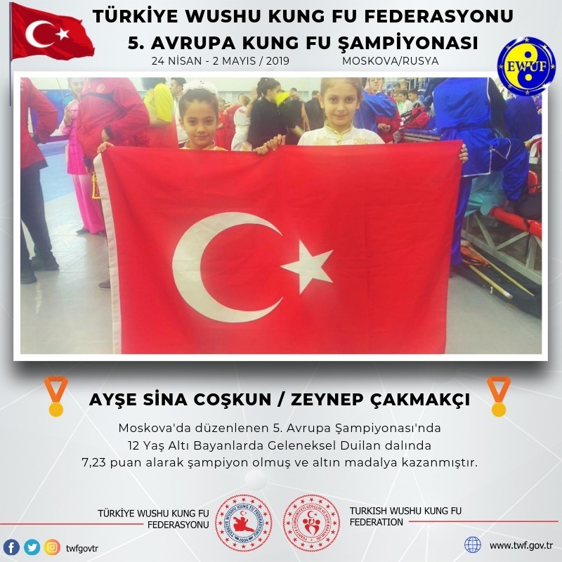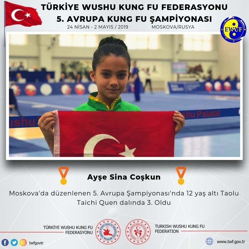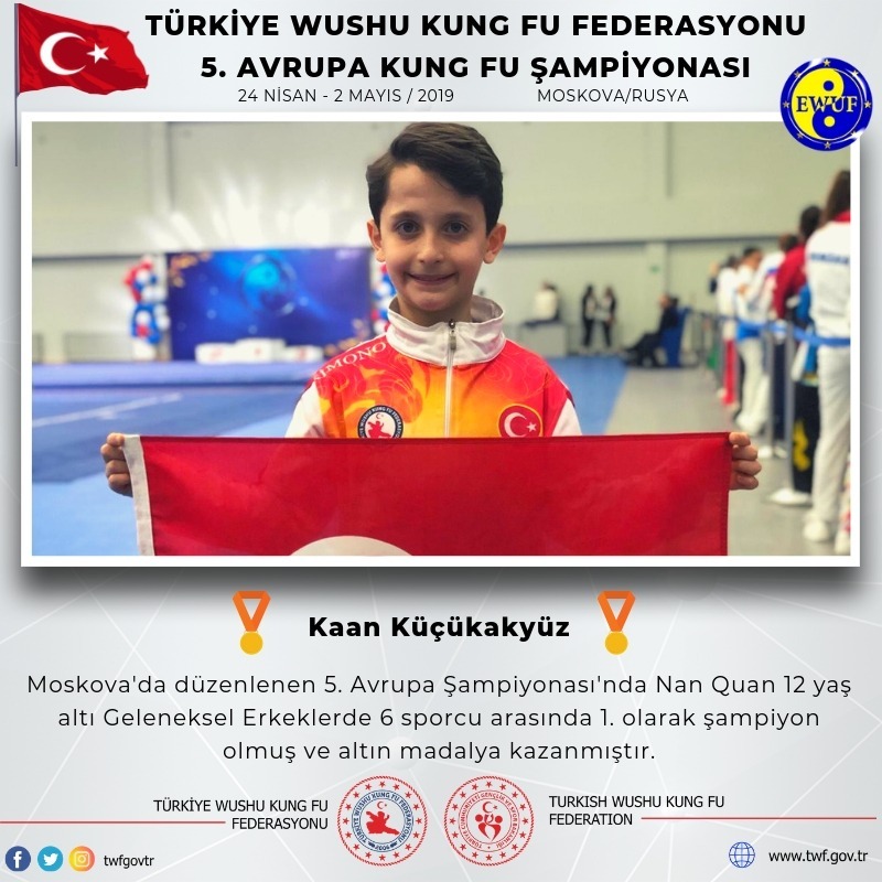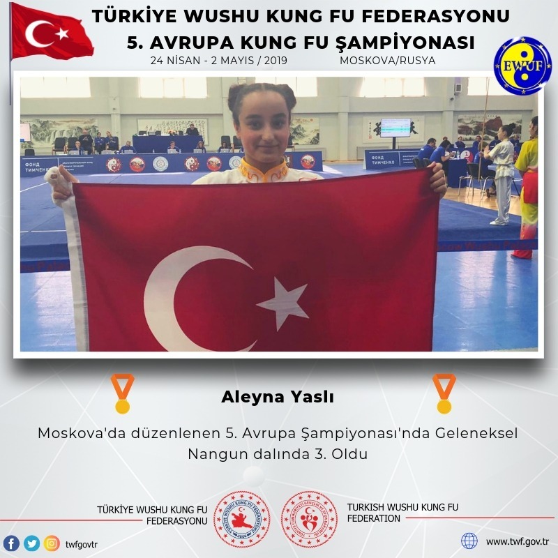 5. Avrupa Wushu Kung Fu Şampiyonası’na 84 kişilik sporcu kadrosu ile katılan Wushu Kung Fu Milli Takımı, Avrupa Şampiyonasını 28 altın, 26 gümüş, 18 bronz madalya ile tamamladı. 25 ülkenin katıldığı şampiyonada toplamda 72 madalya kazandı.