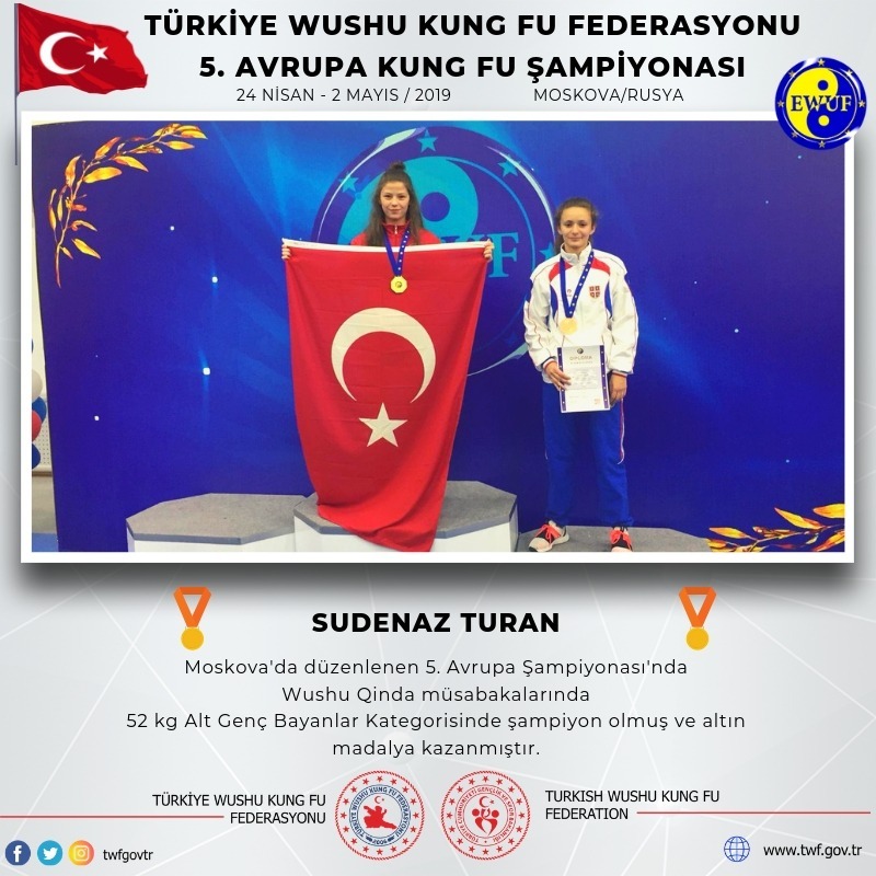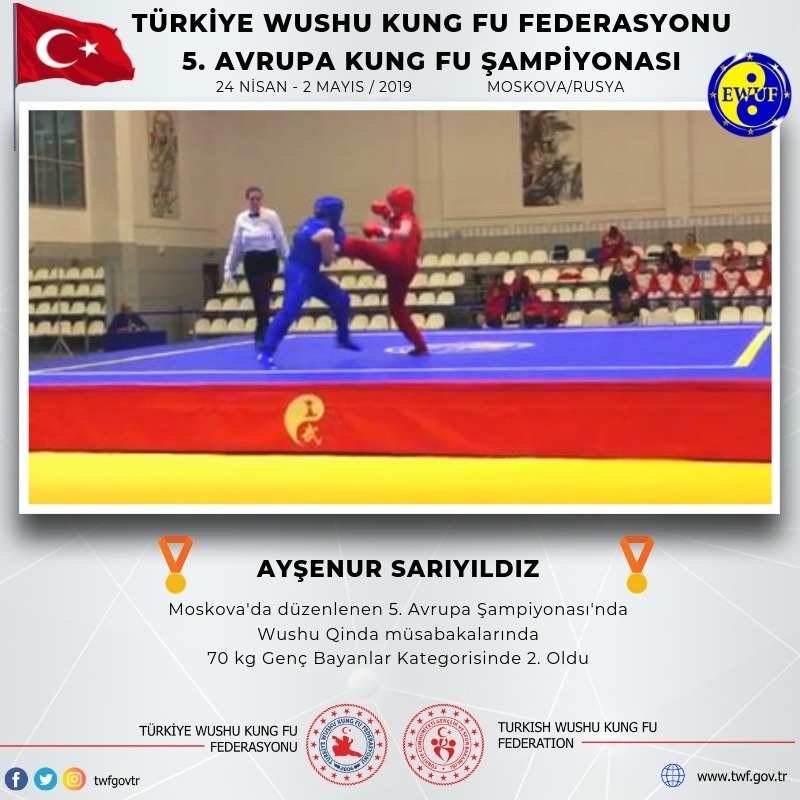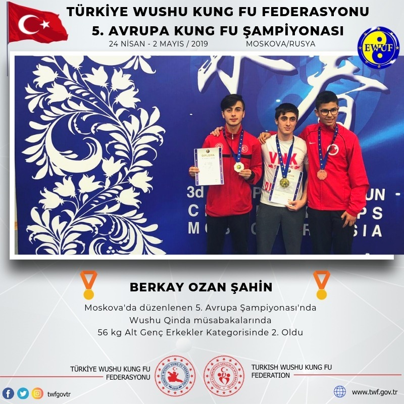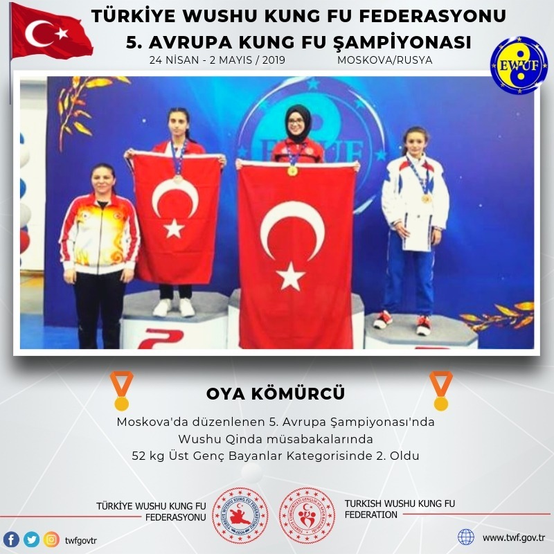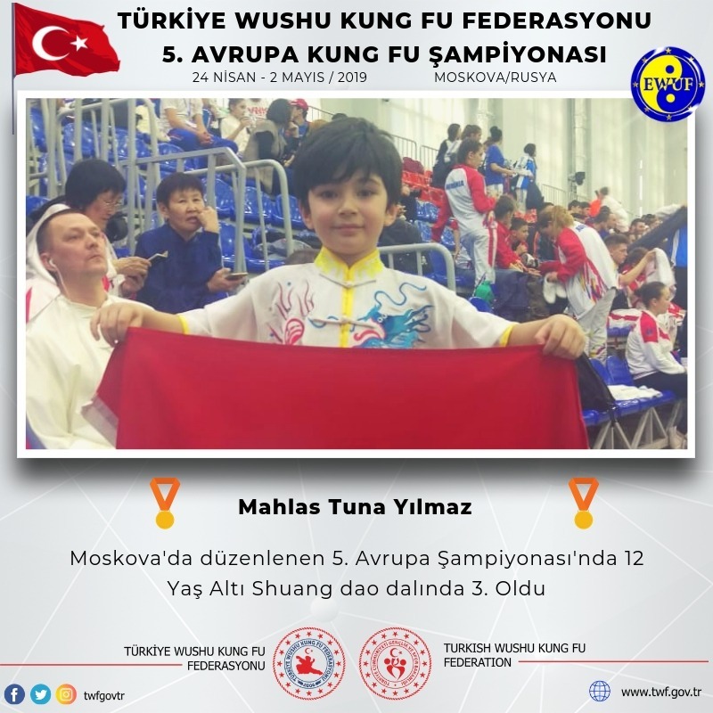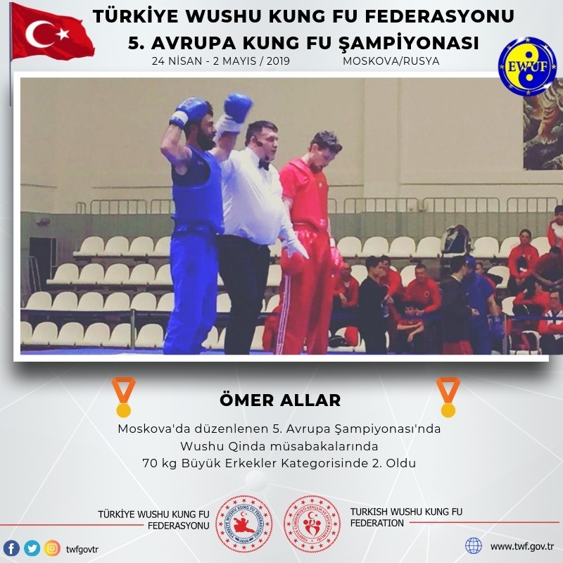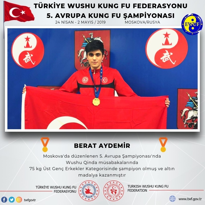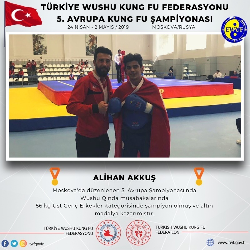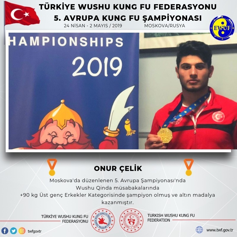 5. Avrupa Wushu Kung Fu Şampiyonası’na 84 kişilik sporcu kadrosu ile katılan Wushu Kung Fu Milli Takımı, Avrupa Şampiyonasını 28 altın, 26 gümüş, 18 bronz madalya ile tamamladı. 25 ülkenin katıldığı şampiyonada toplamda 72 madalya kazandı.