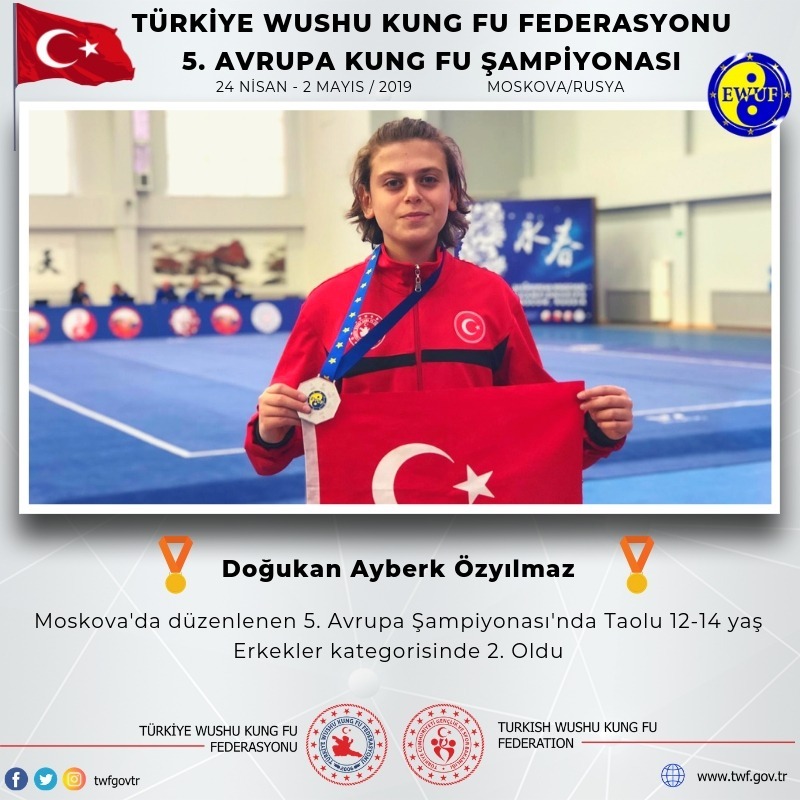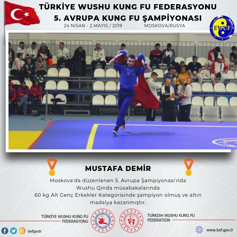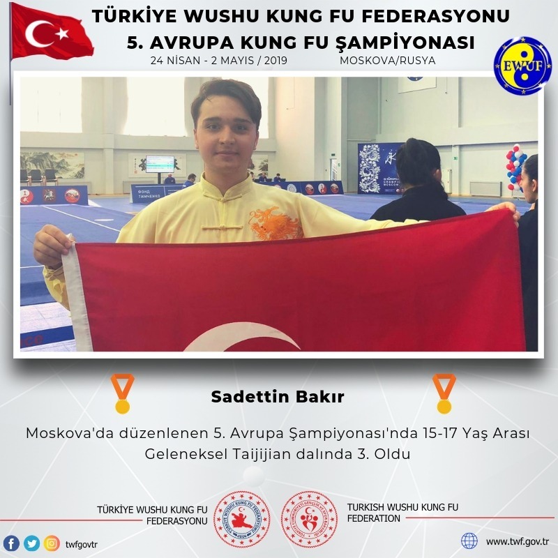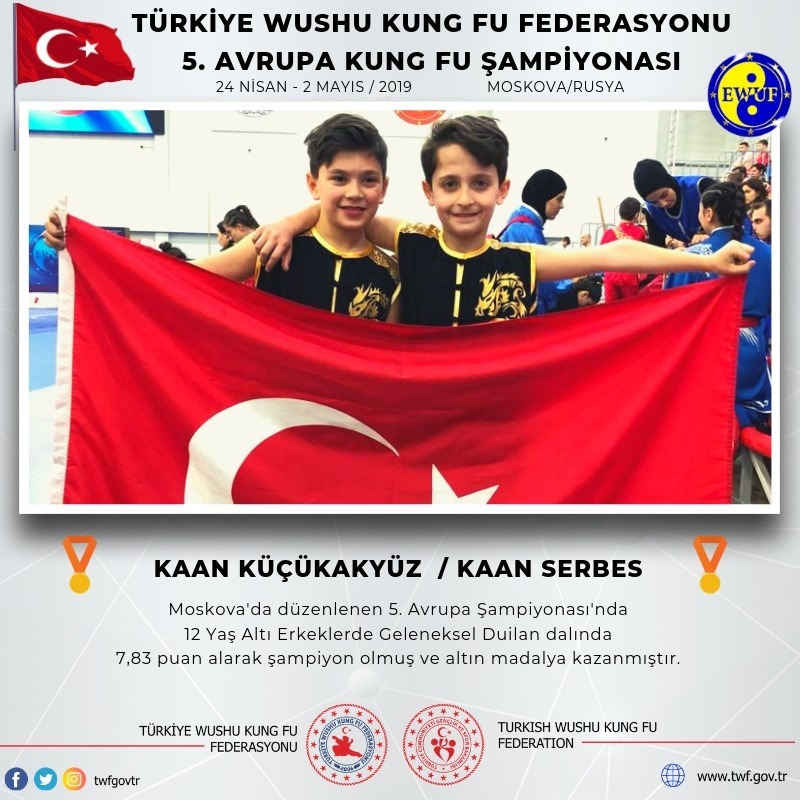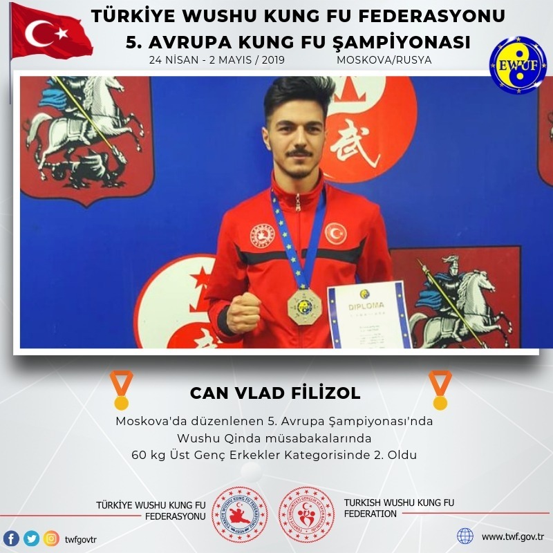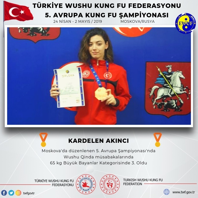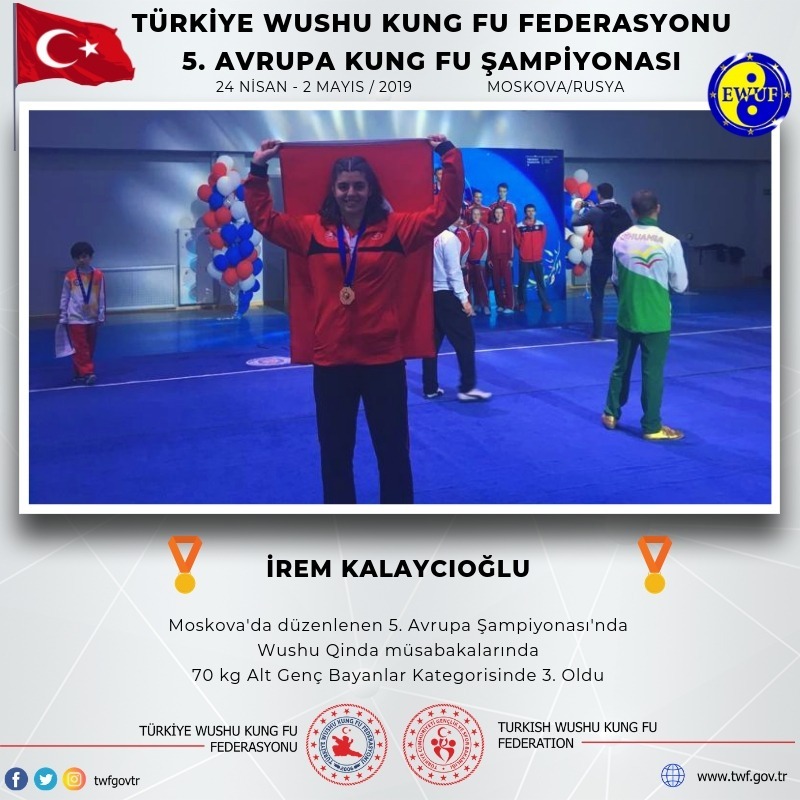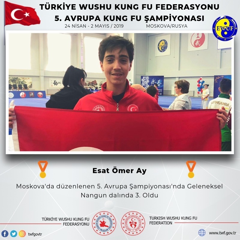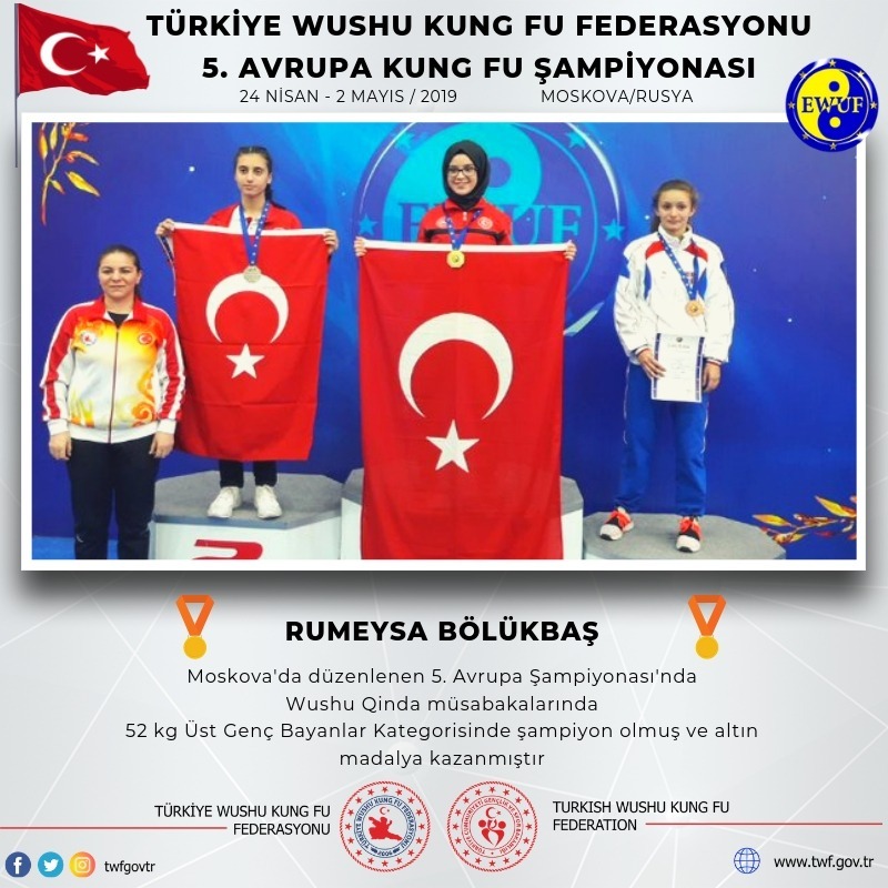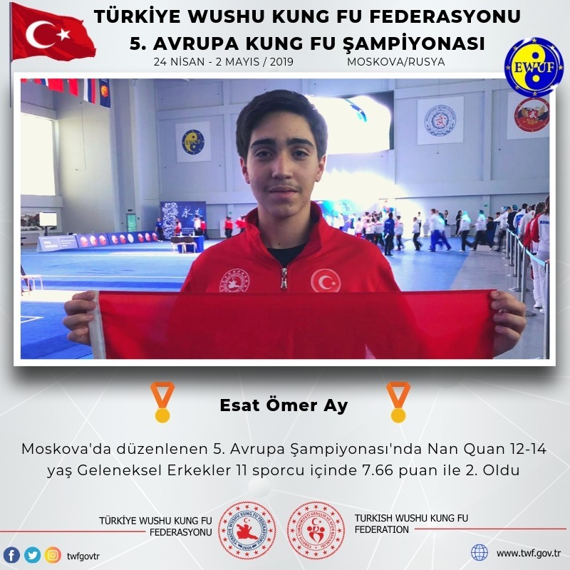 5. Avrupa Wushu Kung Fu Şampiyonası’na 84 kişilik sporcu kadrosu ile katılan Wushu Kung Fu Milli Takımı, Avrupa Şampiyonasını 28 altın, 26 gümüş, 18 bronz madalya ile tamamladı. 25 ülkenin katıldığı şampiyonada toplamda 72 madalya kazandı.