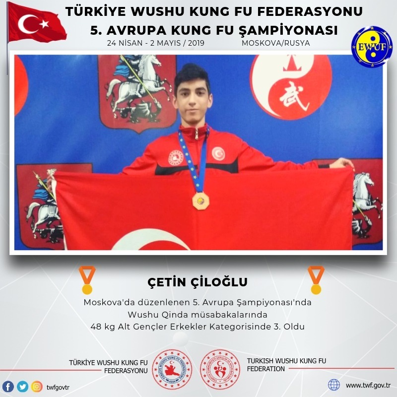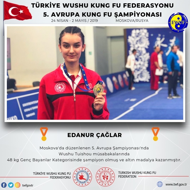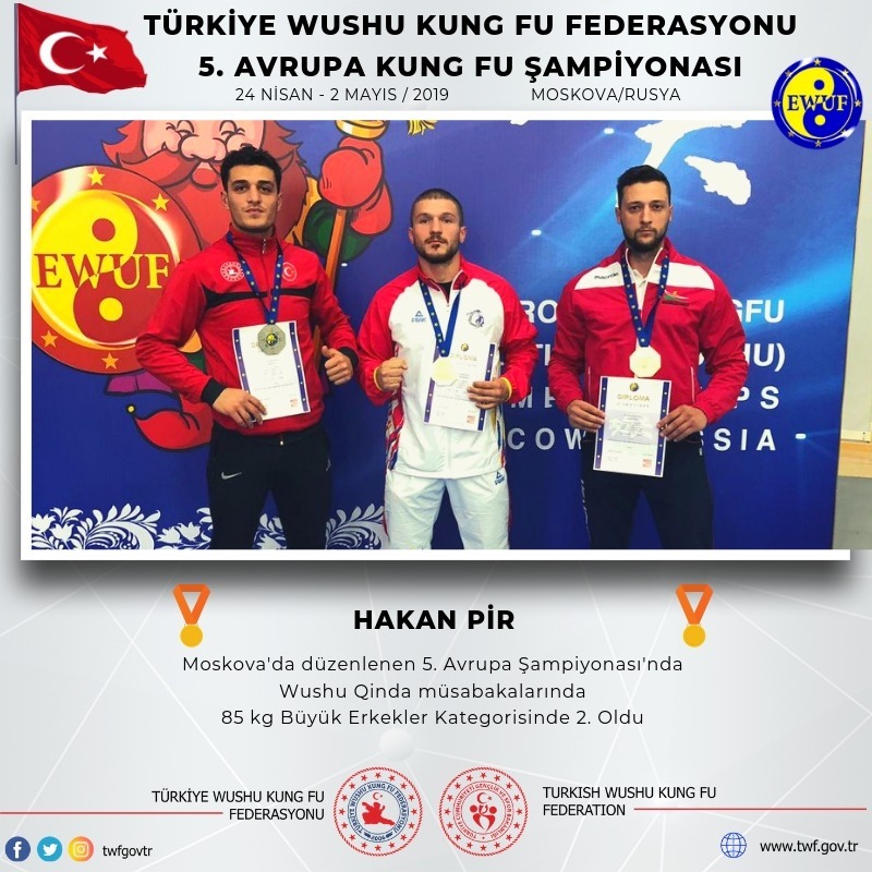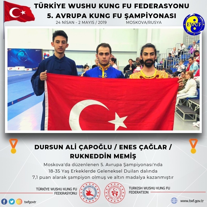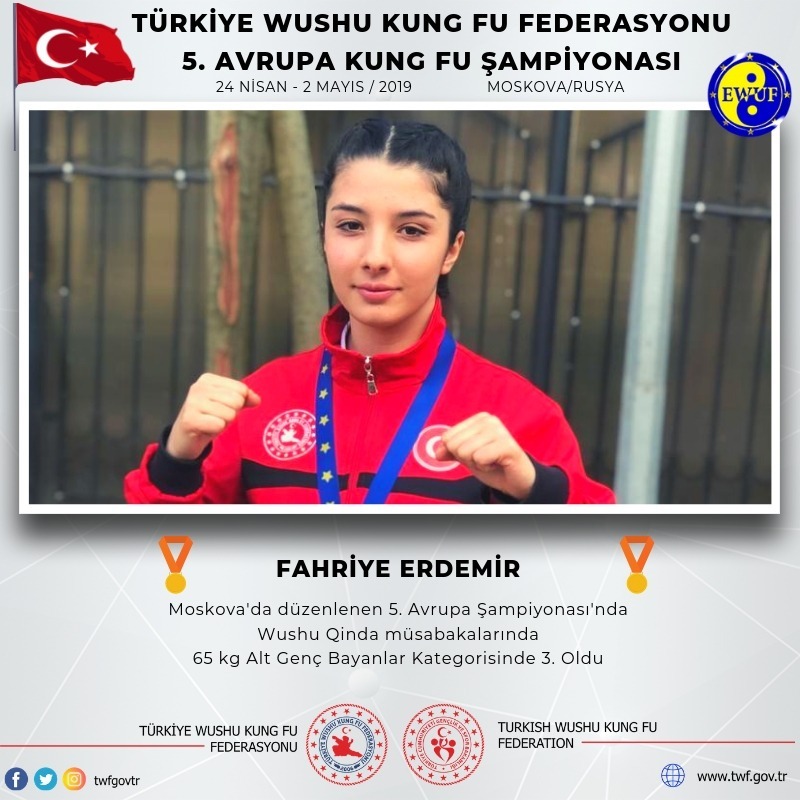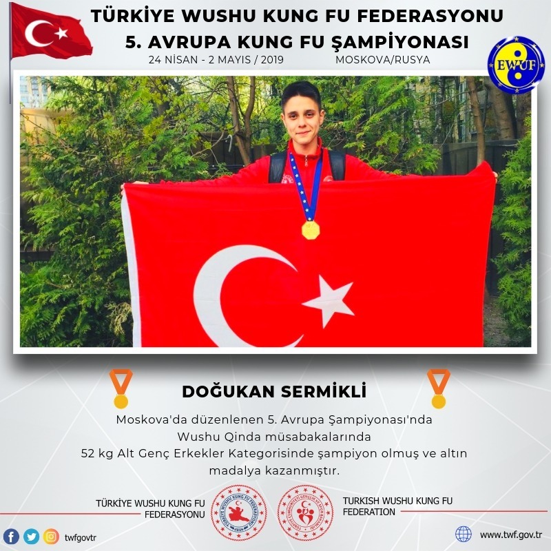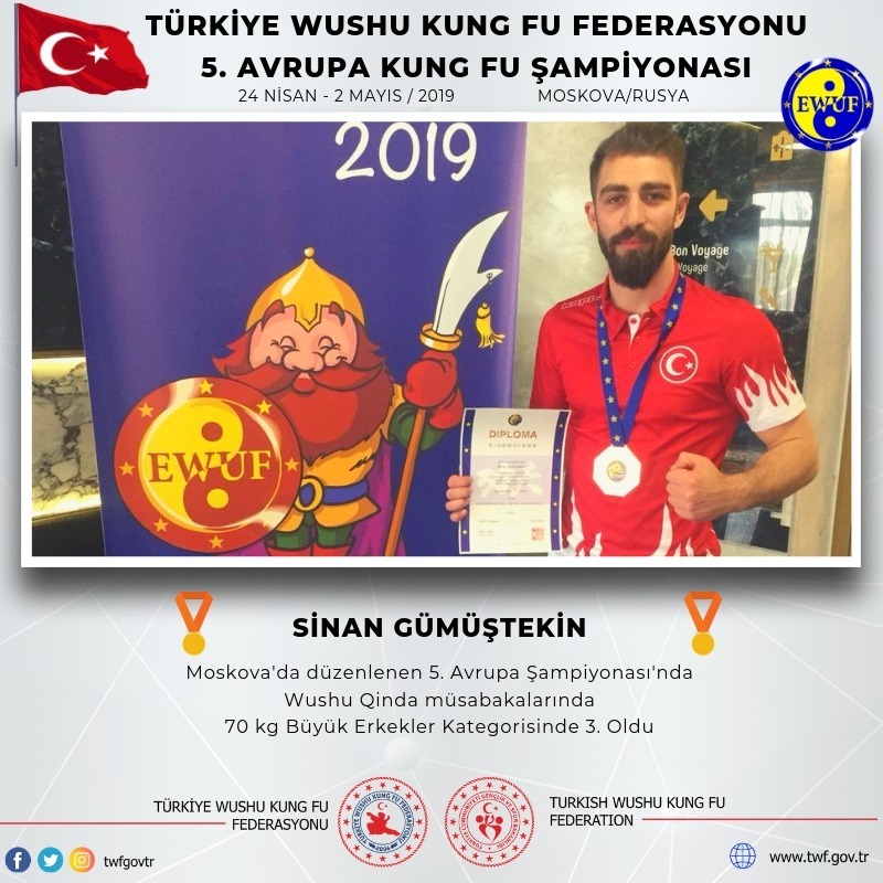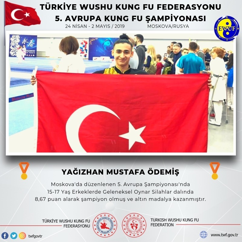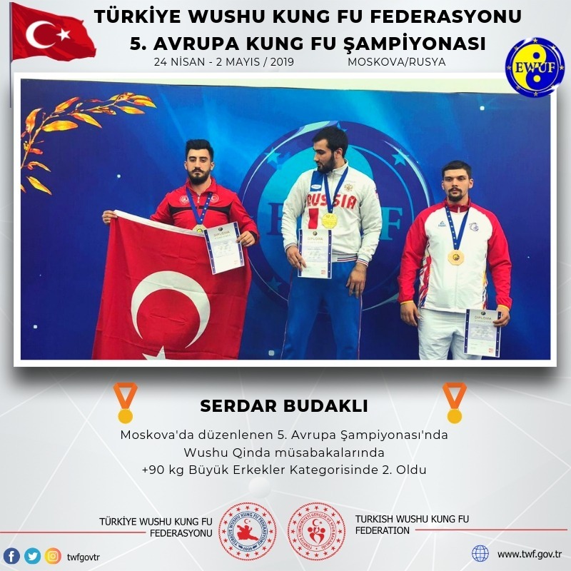 5. Avrupa Wushu Kung Fu Şampiyonası’na 84 kişilik sporcu kadrosu ile katılan Wushu Kung Fu Milli Takımı, Avrupa Şampiyonasını 28 altın, 26 gümüş, 18 bronz madalya ile tamamladı. 25 ülkenin katıldığı şampiyonada toplamda 72 madalya kazandı.