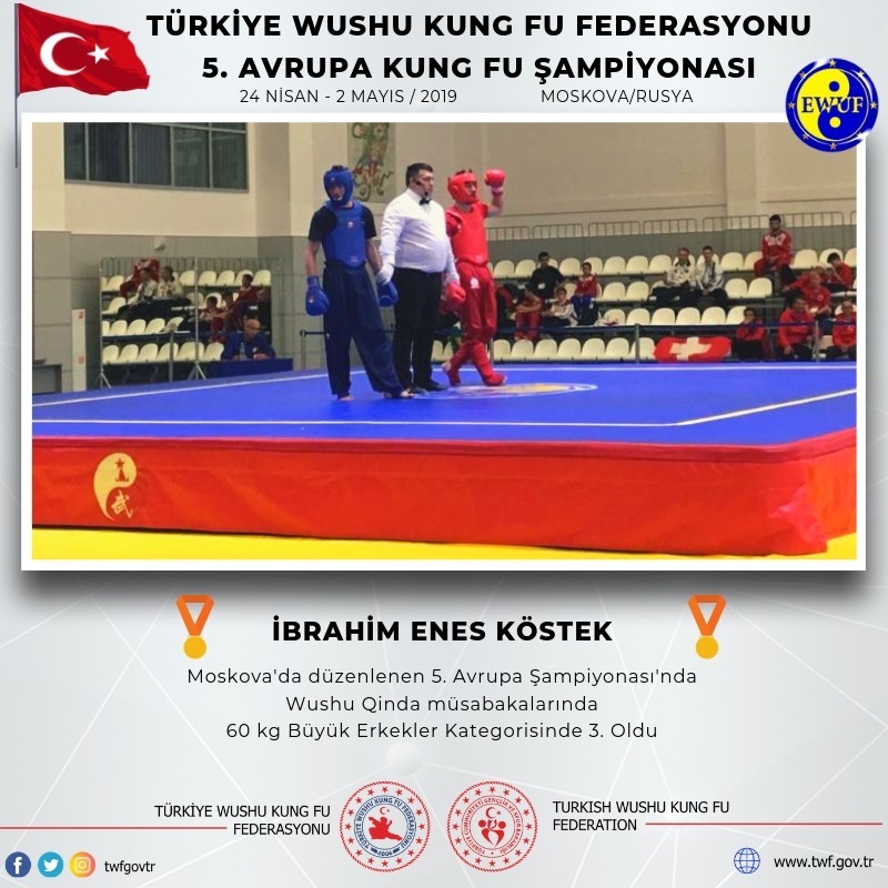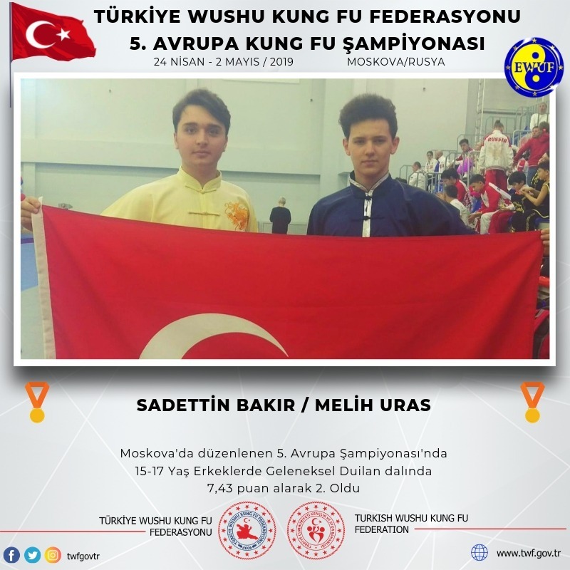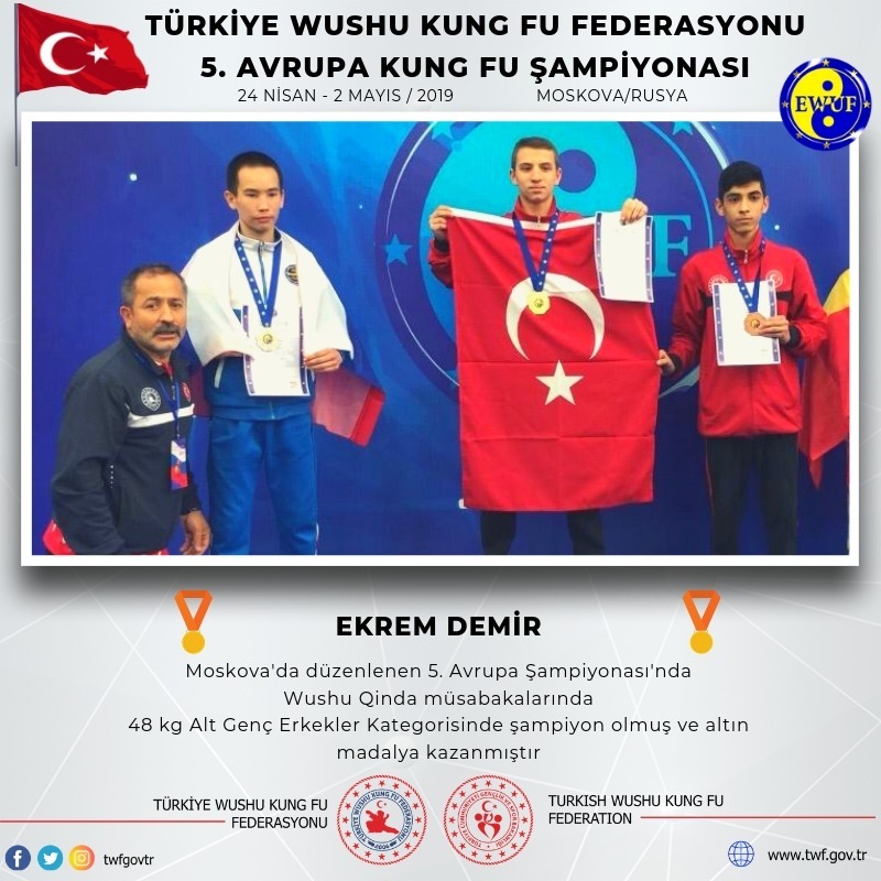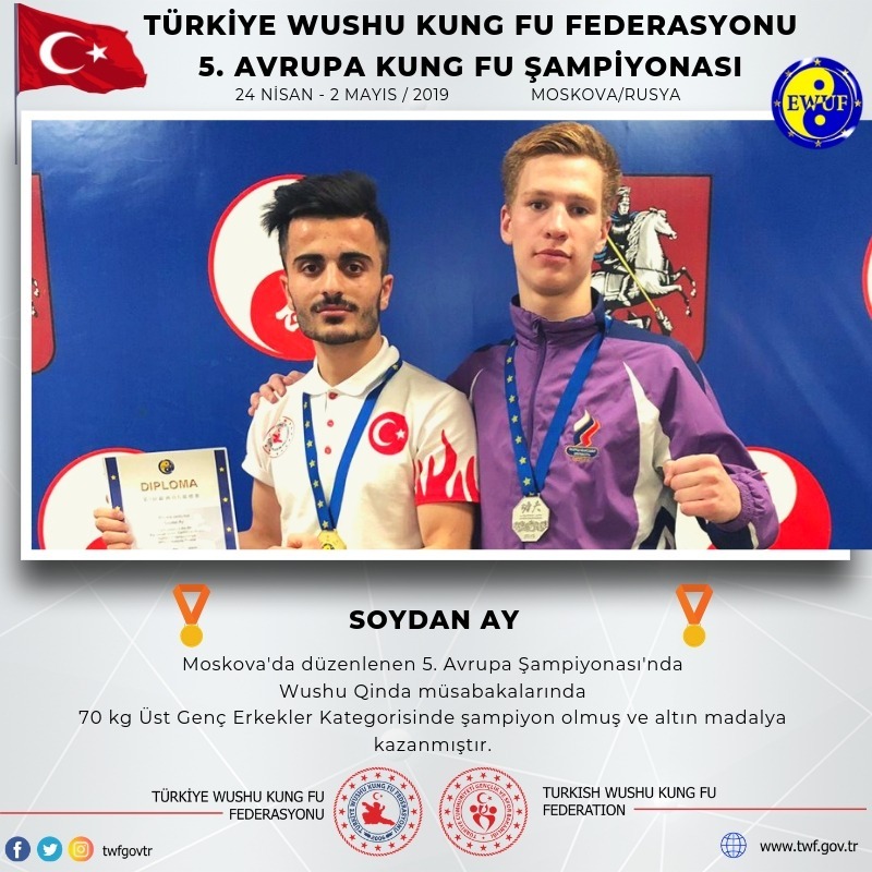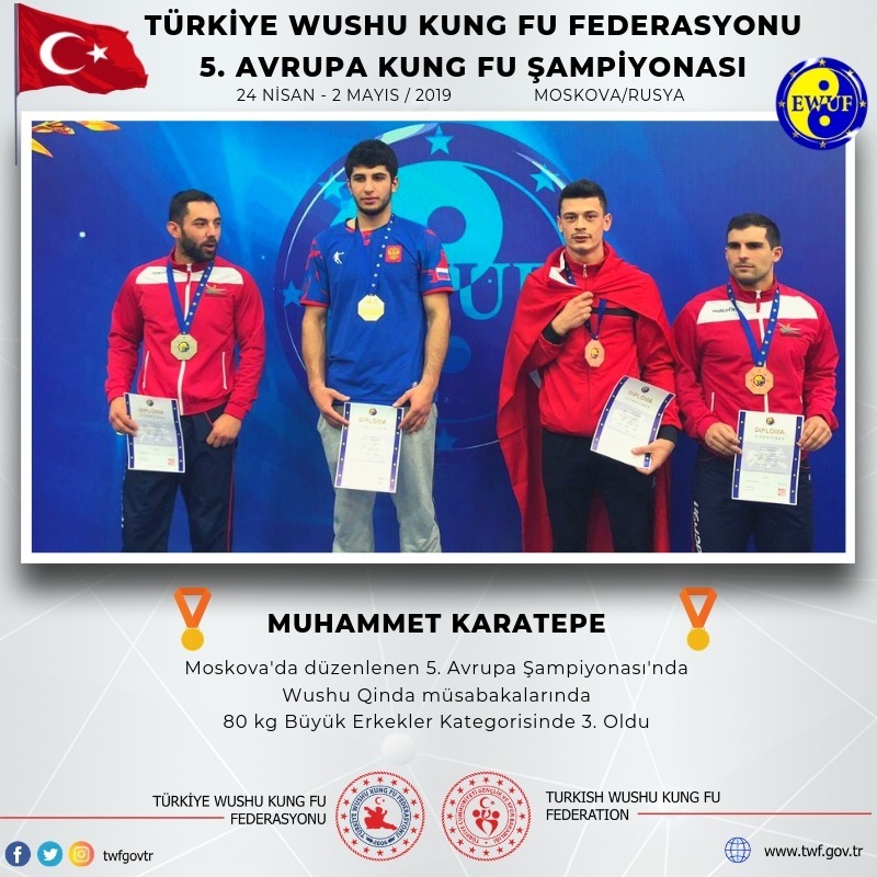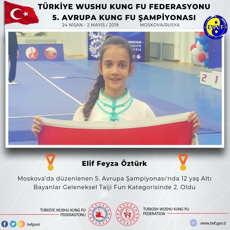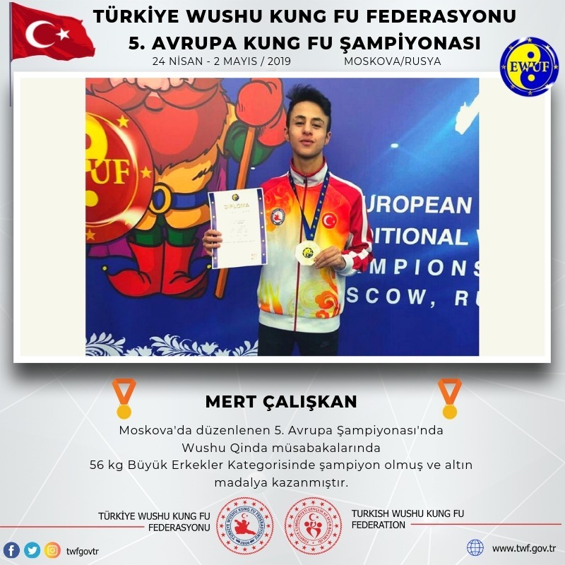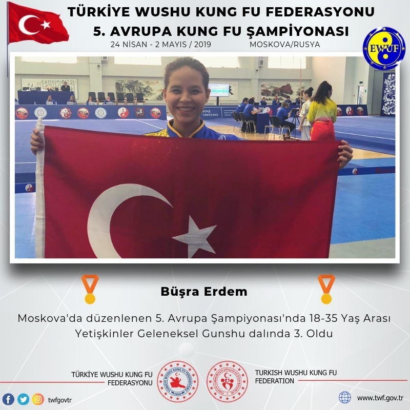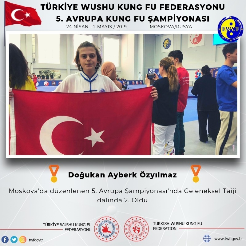 5. Avrupa Wushu Kung Fu Şampiyonası’na 84 kişilik sporcu kadrosu ile katılan Wushu Kung Fu Milli Takımı, Avrupa Şampiyonasını 28 altın, 26 gümüş, 18 bronz madalya ile tamamladı. 25 ülkenin katıldığı şampiyonada toplamda 72 madalya kazandı.